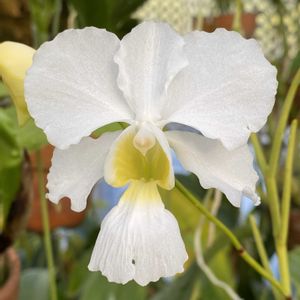 パピリオナンセ テレス アルバ🤍 葉っぱ無しでこんな花を咲かせるなんて 見事としか言いようがないですね。 蘭の力、 育てられた方、 素晴らしいです。