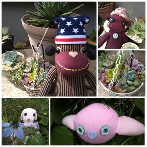 ぷりまみさん主催 🏷ソクモン祭り やっとお人形さんを抱えて庭に出ました😂 花友さんの作品。 レアなソクモンちゃんたち。 ↖プレゼント企画に初当選した時かな😊 ↗花まるちゃんの作品 →なまふちゃんの 多肉寄せ植えガーデン ↘はみなさんよくご存知のまつぴよさんのフクロウちゃん。 小さくて可愛いんです。 ↙*yumi yumi*さんの作品。