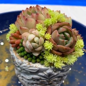 ⭐️多肉植物の寄せ植え⭐️ いい感じに暴れてます♪ エケベリアが埋もれてる😅 セダムの花も 可愛い😍