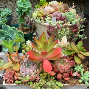 🌼多肉植物の寄せ植え🌼 モリモリ元気そうです😊 梅雨前に きれいな姿を見せてくれてます♪