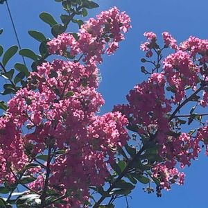散歩道の百日紅🩷 炎天下に写真撮りに行きました🥵💦 逆光で… 実物の方が綺麗でした😔