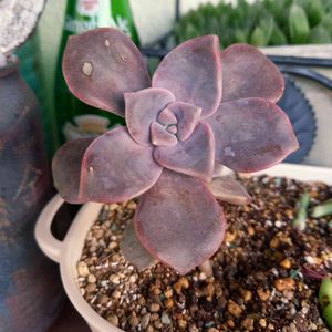 パープルディライト 我が家の暴れ多肉!伸び放題💦 100均の苗から4年、自由奔放! 日晒し、雨晒しでも元気! ロゼットは既に手の平サイズ🖐️ そろそろ、切り戻して植え替えるかと悩み中です? 落ちた葉は転がしておいても勝手に葉挿しで増えていきます♪