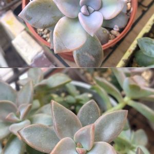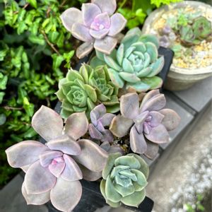 おはようございます☀ 近況報告(不定期)☺ その③ こちらも頂いた子達の最近の姿です🌿 初恋は葉挿しが順調(先月末にも投稿)に育って来てるし、パープルディライトは胴切✂️して増え続けてます😆 みんな元気でホッとしてますε-(´∀`*)ホッ