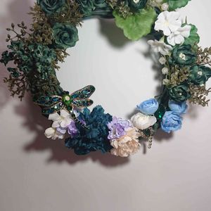 2023/9/21撮影 昨日セリエでgreen色のアレンジフラワー・エレガントローズ見つけて…秋色リース作製。 本日…素材博覧会in小倉でウランビーズを初めて購入。 蜻蛉のブローチとアレンジ。 秋彼岸…絵本からのメッセージを受け取って丸いリースを作りたくなりました。