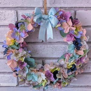 おはようございます😺 アジサイリースを作ってみました🤍🩵💜💙 材料はすべてDAISOで揃えましたよ🤭🤍🩵💜💙