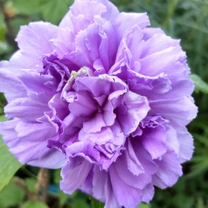 我が家のムクゲ (紫玉💜)が咲き出しました🌸 八重咲きで、ちょっと重そうだけど紫色が綺麗です🤗 今日も気温が37度、いつに成ったら涼しく成るの~😰
