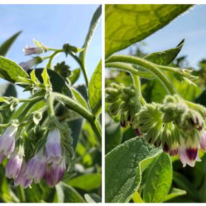 コンフリーの花が又、咲いていました🌸 一度刈られていたのに、又、芽吹き大きく育ち花が咲いた😮強いな~君達は、生命力の強さを実感😆👍️❤️ ご近所散歩🚶♀️ 🏷️秋の空と青い花2023 🏷️葵い空