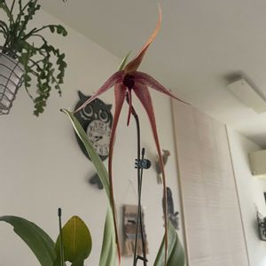 chat-GPTにバルボ目線で書いてもらいました。 ✼••┈┈┈┈••✼••┈┈┈┈••✼ 「ぼくはエキノラビウム」 やあ、ぼくはバルボフィラム・エキノラビウム。みんなには「エキノ」とでも呼んでほしい。 長い茎の先っちょに、ようやく咲いたんだ。いやあ、ここまで来るの、本当に大変だったよ。 まずは、うちのご主人。ぼくのために毎日、霧吹きシュッシュ。温度は一定、湿度もばっちり。そこそこいい環境を用意してくれた。 正直、もうちょっと放っておかれるかと思ってたから、意外とマメな人で驚いたね。 で、ぼくは思ったわけさ。 「よし、期待に応えて、とびっきりの花を咲かせてやろう」って。 ぼくの自慢は、何と言ってもこのビジュアル!シュッと伸びたスタイル、繊細なライン、なかなかのイケメンだと思うんだ。 そして、もう一つ──ぼくの”香り”。 そう、ぼくはただのきれいな顔じゃない。香りも個性的なんだ。 一度嗅いだら忘れられない、脳天を直撃する、究極のフレグランス。 さあ、ご主人、存分に堪能してくれたまえ! ……結果。 「くさっ!」 って、そんな顔する!? 「なんか……昔の公衆トイレみたい……」って、失礼だなあ。こっちは全力で自己アピールしてるっていうのに! それでも、ご主人はぼくに顔を寄せる。 しかめっ面しながら、そっとつぶやく。 「咲いてくれて、ありがとう。」 ぼくも、ちょっと照れくさくなった。 これからもこの個性、全開でいくから、よろしくね! ✼••┈┈┈┈••✼••┈┈┈┈••✼ あっという間にこれだけ書くなんてスゴイなぁ…
