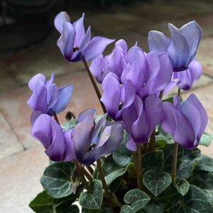 ガーデンシクラメン ドラゴン✨ お迎えしました! 濃い紫から淡い紫まで キレイな花色の品種💜 私が選んだのは 咲き進んで褪色した花が アンティークのようで グラデーションが美しいこの子♪