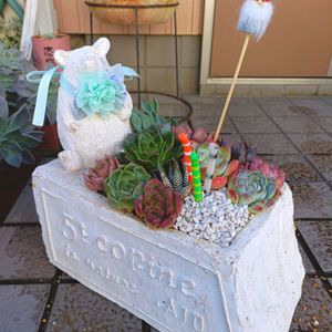 花台にする椅子が届いたので 息子の家に届けてきました♪ 明日引越しです🏡 鉢を作った2ヶ月前とは随分様子が変わってしまった😥 エケベリアのメンテナンスはとても難しいです😩💦