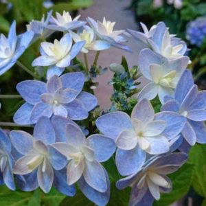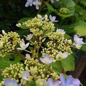 いま 店頭で見れる 加茂セレクションの品種を 幾つか up します 🌱 こちらは、 ハイドランジア コンペイトウ スマイル ガクアジサイのコンペイトウのリニューアル版ですかね。両性花も八重咲きとなり大小の花が見事に咲き乱れる半テマリ。 島根県生産の銀河が人気になった影響か どのアジサイ農園もこういったタイプを出し始めて 😅なんとも見分けに苦労します。 このコンペイトウは白覆輪がハッキリと出てないので 更に難問ですね。 ちなみに、土のpHに影響されるタイプ。