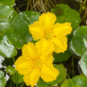 準絶滅危惧種のアサザが、咲いています 鮮やかな黄色が眩しいです