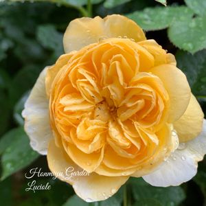 雨の中可愛く咲いてました❣️ ロサオリのリュシオール。 小ぶりでほったらかしでも良く咲きます。黄色🟡コーナーより🟡