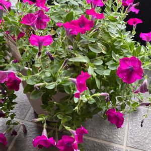 おはようございます☔️ まだ☔️雨の東京です。 今朝は17度、昨日よりは暖かい? 日中は24度まで上がるとか🌤️ 一昨日の夕方から玄関先に取り込んだ サントリーフラワーズさんのサファイアパープルミニ💜❤️💜❤️💜 梅雨の頃に一度ピンチしてから台風にもめげずここまで大きくなりました。 鉢は8号鉢です。 毎年この花は購入してましたが、ここまで元気だともう一度ピンチしたら冬越しできるかな?😅