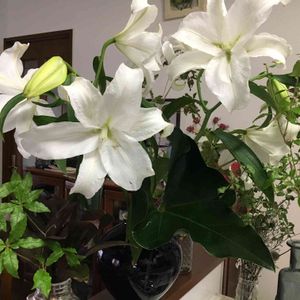私の大好きな白ゆりが満開です💖 名前は分からないけど、主人の実家の庭からいただいてきたもの。 もう4~5年になるかな…? いい香りが漂ってます(*ˊ˘ˋ*)。♪:*°