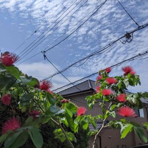 夏空に映える四季咲きネムノキ!! 次から次へと可愛い花を咲かせているよ👏😄💫🎉 癒やされてね💞
