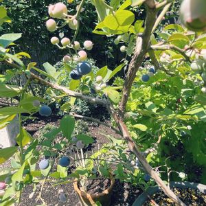 ブルーベリー🫐 楽しみ〜(๑>◡<๑) (去年はこのくらいの色で採っちゃって後からまだ未熟なのだと知った…)