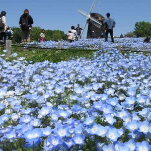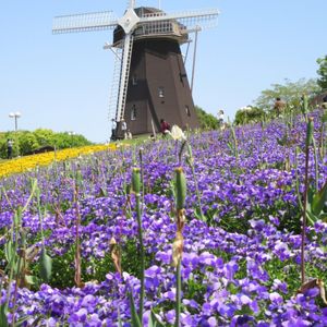 おはようございます☀️😃❗ 鶴見緑地公園風車の丘 ネモフィラとパンジー綺麗でした😊