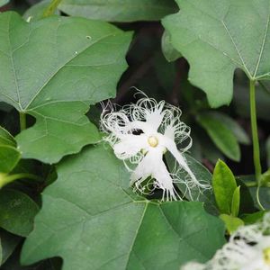 このクシャってした 白いお花? 蔓性植物なんだろう? ありがとうございます! キカラスウリ🙋✨
