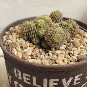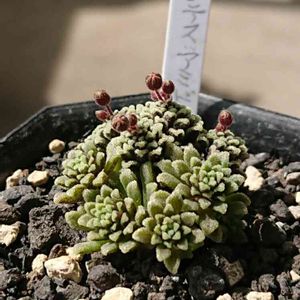 愛智園の『ブラキカウロン』 。 このブラキカウロンさんはモナンテス属の多肉さんになります(*´꒳`*) ブラキカウロンさんは小さくプクプクとした葉を持ち、さらに独特なお花を咲かせる所が特徴的でありカッコいい多肉さんです(๑˃̵ᴗ˂̵) モナンテス属の多肉さんは日本の高温多湿の夏が苦手ですが、ブラキカウロンさんは他のモナンテス属の多肉さんより日本の夏に強いです(๑・̑◡・̑๑) 育て方に関しては普通の多肉さんの育て方を軸にして、夏の蒸し暑さに少し気をつけていただければ一年中元気に成長してくれます! なので夏は風通しの確保をこまめにしていただき、冬は外の気温が10度以下になる時は安全を考えてお部屋や温室に避難させてあげられれば特に問題はありません! このブラキカウロンさんは寒さに強い多肉さんですが、現地では夏や冬といった気温の変化がないため高温と低温をなるべく避けてあげると喜んで成長していってくれます(*´꒳`*) ブラキカウロンさんは葉がかわいらく、お花が独特でカッコいい多肉さんなので一度見ると絶対忘れないような子だと思います! またモナンテス属の中では丈夫であり、ちょっと暑さや寒さに当ててしまい弱ってしまったとしても愛情を持って接していればまた強さを見せてくれる子でもあります! ですのでちょっと変わった多肉さんを家族に迎え入れてみたいという方や、面白いお花を見て愛でてみたいという方にとてもオススメな多肉さんです(*´꒳`*) なのでもしどこかでブラキカウロンさんに出会い、お気に入りの子を見つけることが出来ましたら是非新しい家族の一員として迎え入れていただけたらなと思います(๑˃̵ᴗ˂̵)