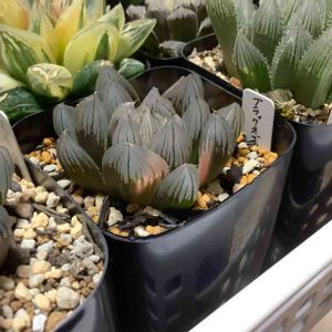 ブラックオブツーサ錦♪(´ε` ) 先程投稿したパープルレンズは窓の輝きが素晴らしかったですが、こちらは一番青光りする窓のハオルチアです☺️ 胴切りしちゃったので変な形になってますが、窓はしっかり青光りしてます♪(´ε` ) 本当に綺麗な青色なのでどんどん増やしたい株です(● ˃̶͈̀ロ˂̶͈́)੭ꠥ⁾⁾