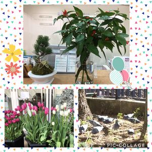 今日、月一で行く病院の受付は新年モードでした。先生に伺ったら、コロナワクチンは始まるそうで安心しました。帰りの道で見たお店の前のプランター、もう、チューリップ🌷が沢山。木の実を食べてる鳩達🕊餌になる物が少ないのかな。