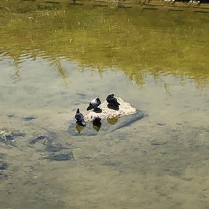 今日のお花「ヤブラン(藪蘭)」が咲く遊歩道の小川は、鳩の避暑地になっていました🐦🏝🌿🌴 日によって、カルガモも来ています✨😊