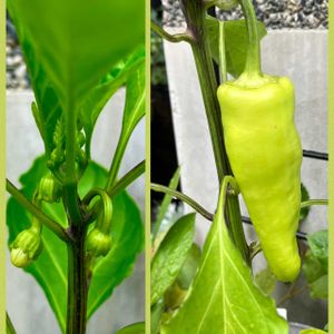 黄色っぽい唐辛子みたいなバナナピーマンの花😊 実はパプリカみたいな味でした。