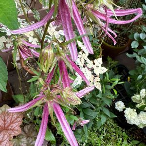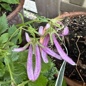 ホタルブクロ ピンクオクトパス🐙 面白いお花が咲きました♪ ずっと欲しくて去年の秋にやっと手に入れた子。 スリット鉢の穴から新芽が出てくるくらい成育旺盛なので、庭に降ろせず未だ鉢管理。 メインガーデンのホタルブクロの海に投入するか(最強ホタルブクロのタケシマに勝てるか⁈)、裏庭にホタルブクロ花壇を作るか悩み中。 狭い庭なのに、好みの子がかなりの確率で生育旺盛😓