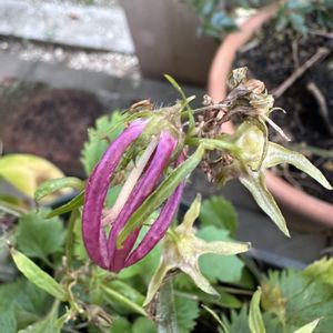 蛍袋『オクトパス』 赤糸ホタルブクロ 普通の蛍袋より 一足早く咲きました。 糸のような、タコのような🐙