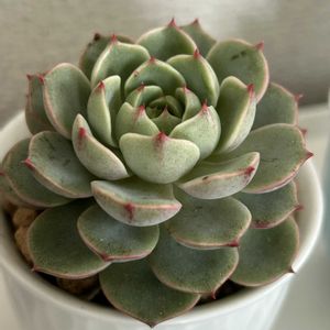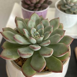 DOLCE’S様にてカット苗の状態で購入したスノービューティーです 我が家の多肉たちの中でも随一の美しさ 惚れ惚れしちゃいます ただ、ですね スノービューティーと検索しても全くヒットしてきません‥ オリジナルの交配の子なのかな? 多肉植物の命名則ってどうなってるんでしようねー