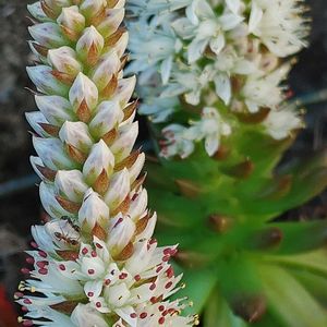 気温が下がって色付いてきました! ① 花は下から咲いていきます ② ㊤部分 ③ ㊦部分 ④ まだ咲く年齢でない子株たちは 紅葉しています🍁 ⑤ 子株でぎっちぎち (○´∀`人´∀`○)ギュー