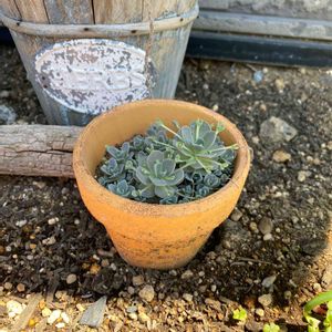 昨日いただいて皆さんにお答えいただいた朧月を 土の上に置いてみました 外放置のポカポカお庭から半日陰の我が家へwelcome 丈夫に育っとくれゃ (ღ♡‿♡ღ)