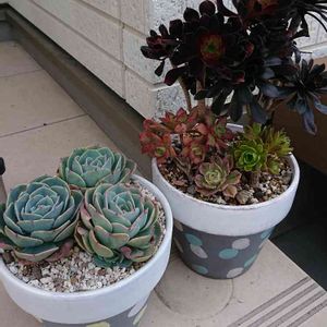 玄関先の多肉達✨ 大きくなってほしいので雨ざらし🌧️ここ最近の暖かさで葉挿しの成長もすごいし、多肉観察楽しすぎます☺️❤️ ついつい葉をもいだり、カット苗作ったり…胴切りもやりたい✨