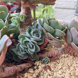 裏からのPIC Σp📷ω・´) 欲しかった七福神ちゃん❣⃛お迎え🏡 七福神は子株が付きやすい品種だから ギュウギュウだと良くないよね? しばらくは、このままで飾ります🥰 他は名前わかりません笑 セダムも入ってて可愛い作品❤︎*。 こっちにザガローズかな?(´・ω・`)?
