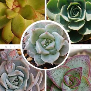 🎶🎶 ド真ん中祭り 🎶🎶 参加させて🙏 ↖️サンライズマム ↗️七福神 🍀 ド真ん中は白牡丹の葉挿しっ子 🍀 ↙️白牡丹 (親) ↘️星の王子