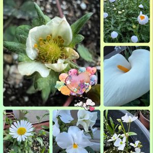 🏷毎月2日はスヌーピーの日 1日遅れで、参加させて頂きます。 我が家で咲いてる白い花ꔛ♡ いちご・ノースポール・カラー・ オモダカ・パンジー・エリゲロン メダカの🐟鉢に蓮も入ってるがオモダカが増え満開です´ ³`°) ♬︎*.:* 🏷純白マニアに参加
