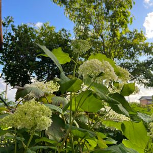 嵐が過ぎ去った後の´ ³`°) ♬︎*.:* お天気☀️.°運動会日より 🏷半分そら 失礼致しました…又お邪魔させて頂きます(* ᴗ͈ˬᴗ͈)” アナベルが少し白く🕊🤍☁️💭