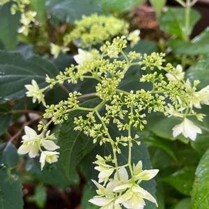 ヤマアジサイ ヘイズスターバースト🤍 先日、お迎えした小さい苗です 咲き始めはガクあじさいのように咲いて、咲き進むとてまり咲きのようになるようです✨✨