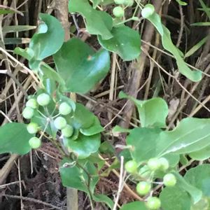 おはようございます☺️🌸 藪の中に山帰来サンキライが😃💓 赤くなった実はクリスマスリースなどでおなじみですが、夏のグリーンの時も爽やかで大好き❤ 別名、サルトリイバラ。つるに棘があって山の中で猿もひっかかるからとか💦ほんとかな😅
