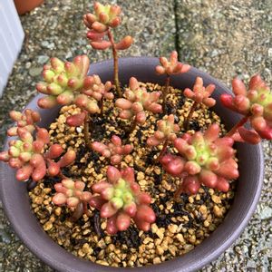おはよう御座います😊 春に挿し木した虹の玉🌈が綺麗に色ずいてきました❣️ ②前からある虹の玉ポロリと落ちては可愛い芽が出てます姿がみだらですが😅 ③④いつの間にか他の鉢物に同居してました😄 この子を植え替えしないとね😄 🏷️真っ赤な火曜日