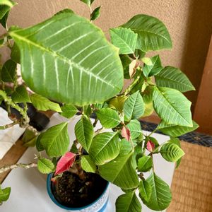 おはようございます☀ 一昨年のポインセチアを10月から暗闇に置いたら少し赤くなってきました!!ヤッタネ❣️