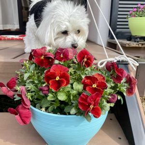 今日はわんわん祭りですね🐶 お花を愛でているラテです🌸 🏷️ワンワン祭りに参加いたします!