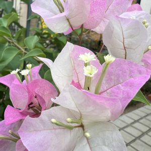 ①② ブーゲンビリア 長い年月我が家で咲いています 去年は枯れそうになったが元気を取り戻して綺麗に咲き始めました ③ジュズサンゴ 赤い実が可愛い♥️(๑♡∀♡๑) ④トレニア 畑で種がこぼれ毎年咲いています😀 ⑤マツバボタン 今日は何色が咲くのかなぁ