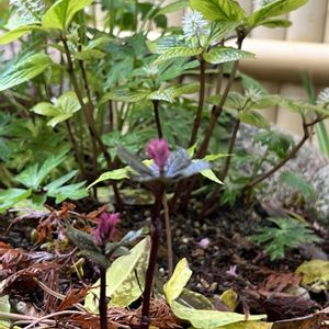 『赤花一人静』赤い花で茎や葉も銅葉がかり美しく葉が展開してくると葉の色は緑色になります。 『一人静・金屏風』