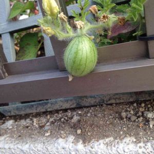 毎年植える小玉スイカ🍉 フェンスに這わせてます。