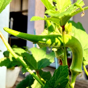 こんばんは 番外編で💚育ち過ぎのオクラ 何かに見えません?😄 私は??? 🦈🦈🦈