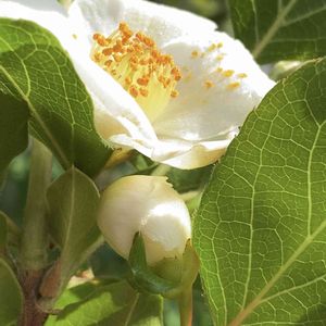 我が家の記念樹、 紗羅(姫紗羅かな?) の花が咲きだしました🎶 銀色のつぼみをいっぱいつけて❣️ 今年も元気にありがとう❣️〜です😁