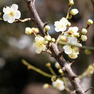 近所の公園の梅の花のつぼみが開きはじめましたよ~今日の気温は13℃はありました。太陽の光が降り注いでくるのが解ります。