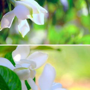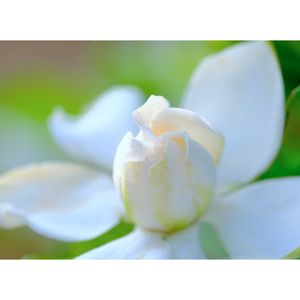 【梔子】《アカネ科》 花言葉 「とても幸せです」「喜びを運ぶ」 「優雅」「洗練」 ヤエクチナシは 西洋でコサージュに用いるために 栽培されていた植物で、 八重咲きの品種です 強い香りが特徴的 5~6cmほどの花が咲きます 実はなりにくい特徴